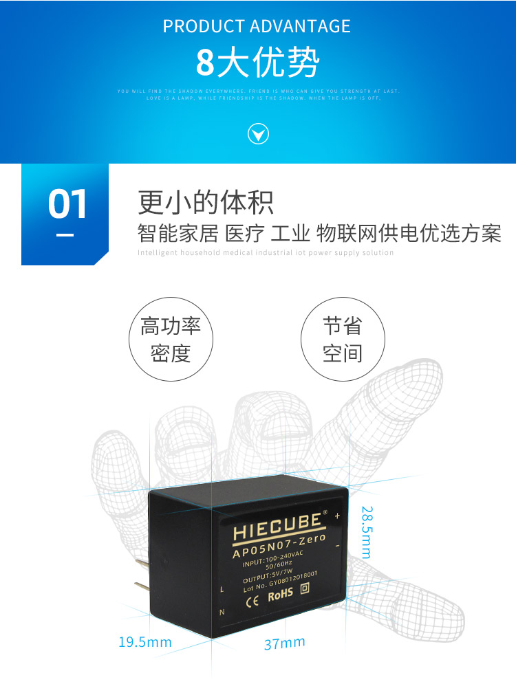 品牌:HIECUBE 型號:AP05N07-Zero 隔離耐壓:3000VAC 輸出電壓精度:±1% 電源類別:工業級ACDC電源模塊 模塊質保年限:3年