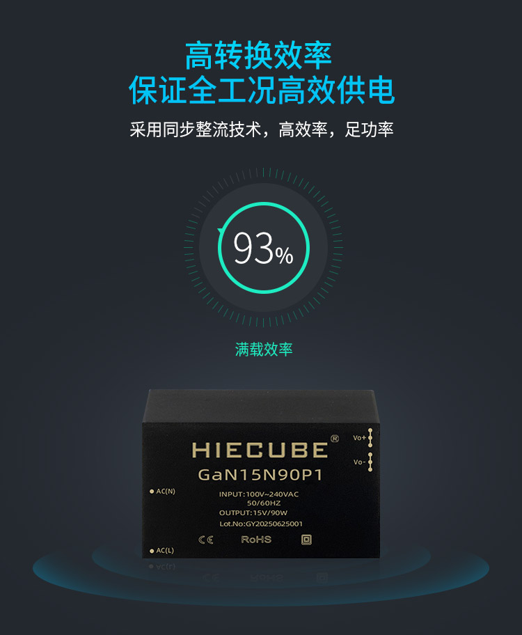 品牌:HIECUBE/高能立方 型號:GaN15N90P1 隔離耐壓:3000VAC 輸出電壓精度:±1% 電源類別:AC-DC電源模塊 模塊質保年限:三年